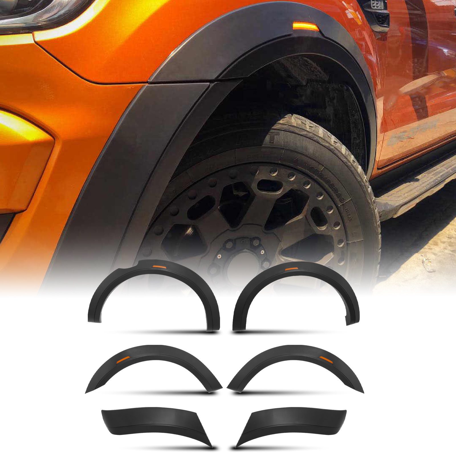Ford Ranger T8 18+ Black Fender Flare Set With Reflectors