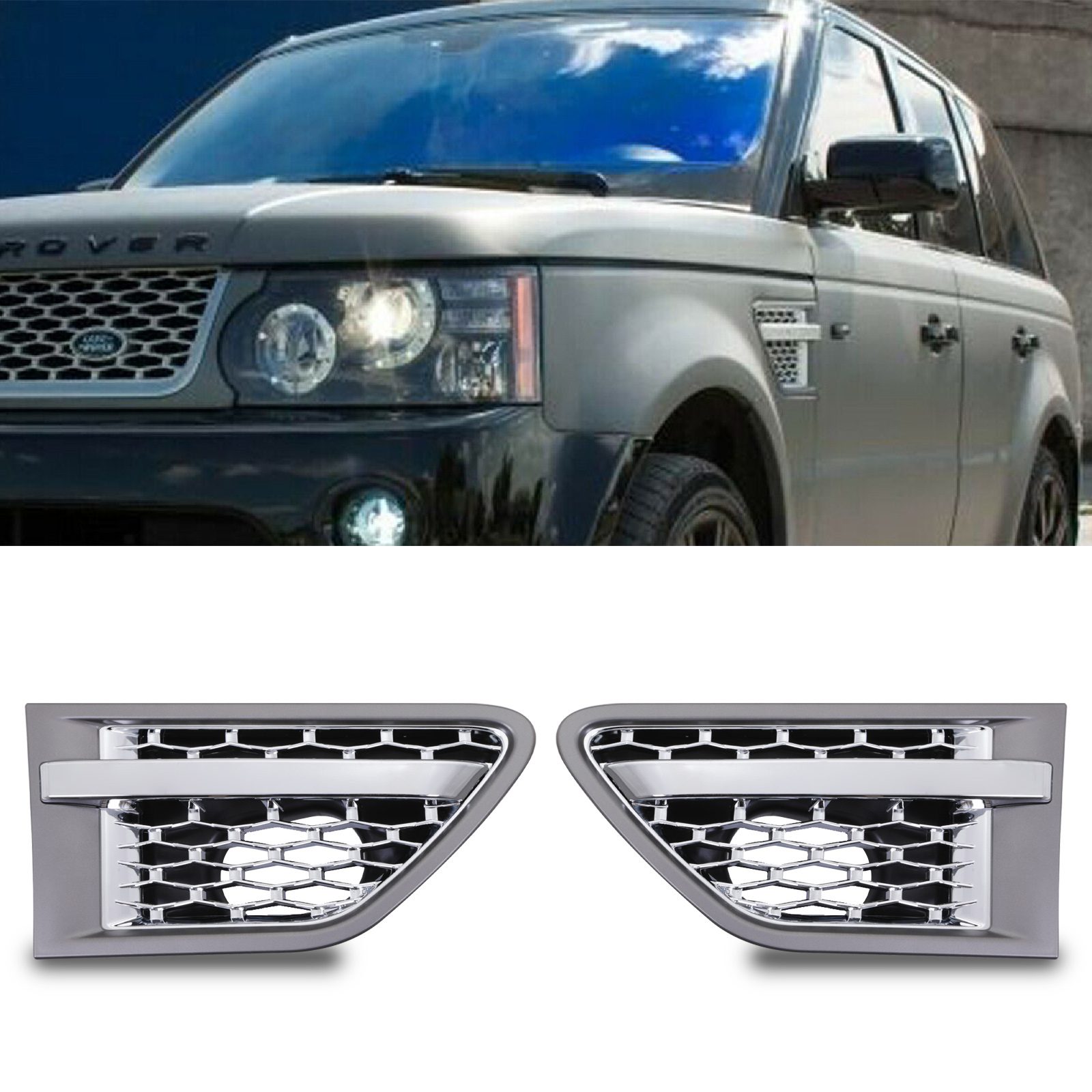 Rogue4x4 Grey & Chrome Side Air Vents To Fit Range Rover Sport 10-13
