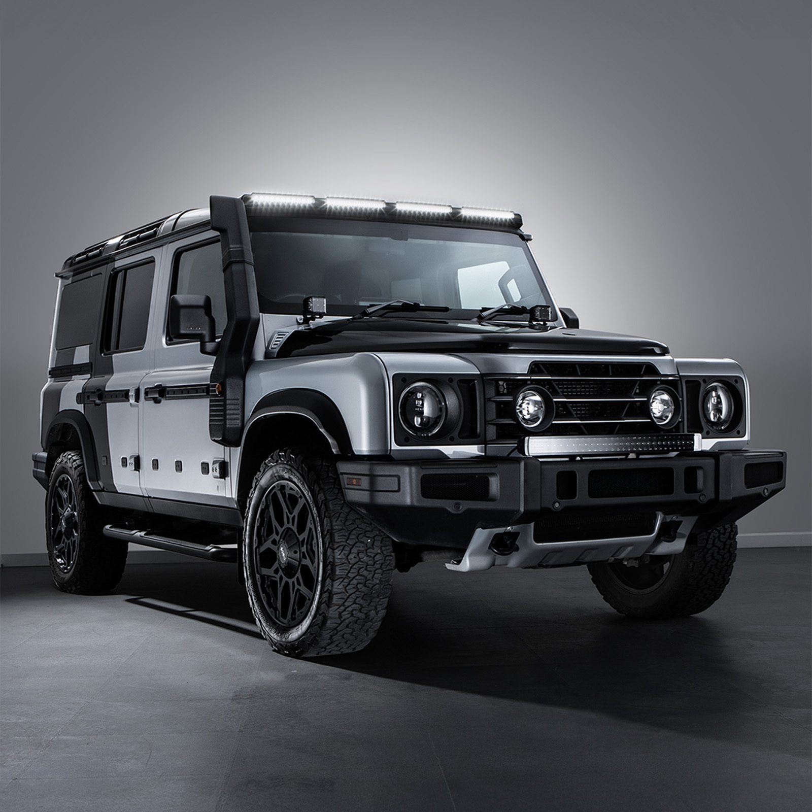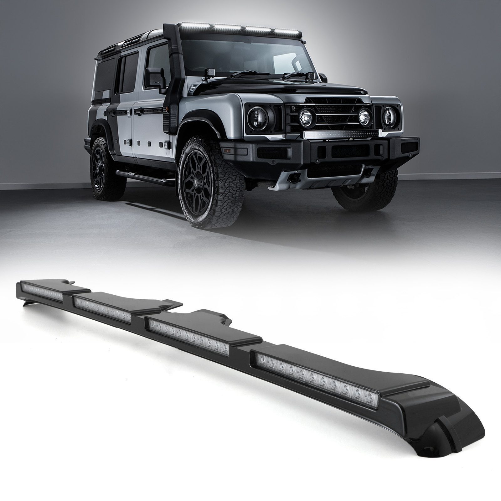 Home > Styling > Roof Lights > Ineos Grenadier 2023+ Quad Pod Roof Mounted Light Gloss Black / White LEDs