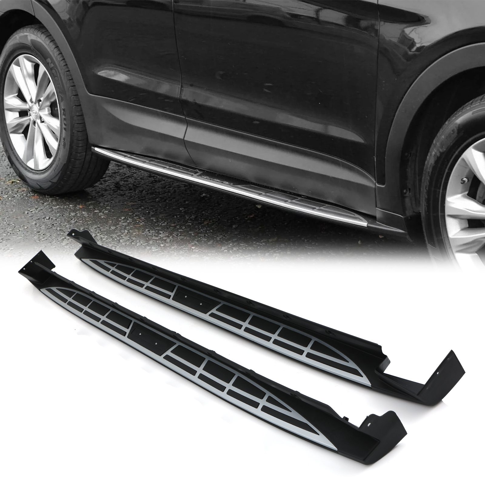 Hyundai Santa Fe DM MK3 13-18 Black & Silver Aluminium Side Steps